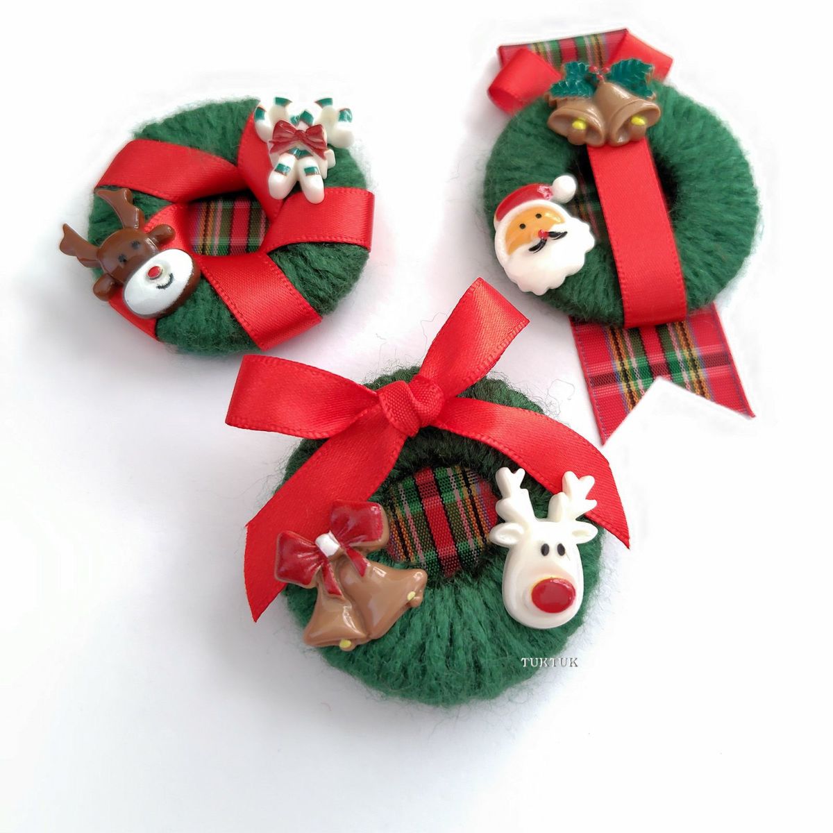 小さなクリスマスリースのようなデザインの、かわいらしいブローチのキット。