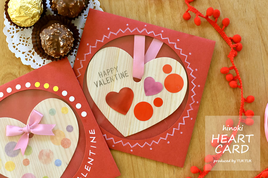 いろんなイベントシーンでお使いいただけるハートの間伐材カード。